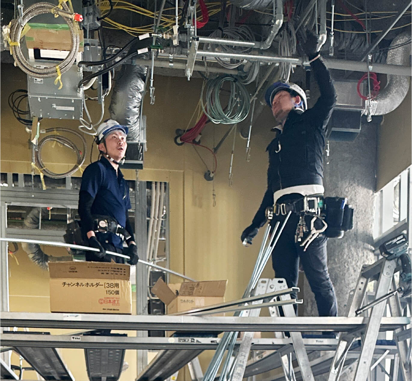 内装工事は技術職になるため仕事を覚えるまでは大変かもしれませんが、仕上がりが目に見える形で表れるやりがいの大きな仕事。技術を磨けばその分しっかり給与に反映されます!